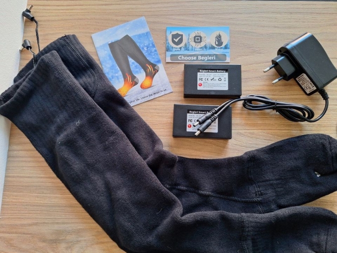 Verkaufe diese unbenutzten Wärmesocken mit Akkus, Ladegerät und Originalverpackung von Begleri. Sie sind schwarz, in der Größe XL und unbenutzt.