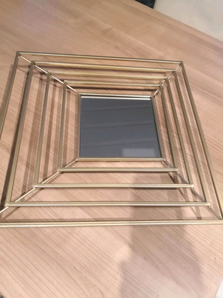 Verkaufe eine außergewöhnliche Wanddeko mit Spiegel in Gold aus Metall. Maße 40 X 40 cm und man kann es nach links oder rechts aufhängen. Ein echter Blickfang für Ihr Zuhause.