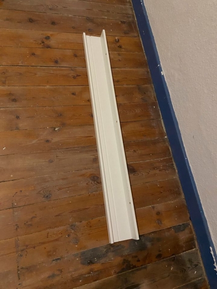 Ich verschenke ein Wandregal von Ikea. Es hat einen leichten Farbabplatzer (siehe Bild 3).