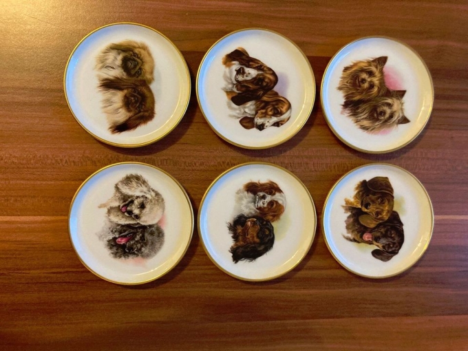 ich verkaufe hier 6 schöne Wandteller mit Hundemotiven. Die Teller sind Fürstenberger porzellan und in einem super Zustand. Die Teller haben einen Durchmesser von ca. 10cm.