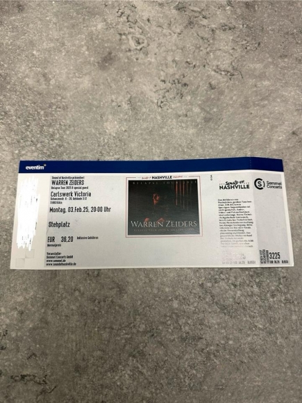 Biete eine Karte für das Warren Zeiders Konzert an, wegen Krankheit abzugeben. In Köln heute Abend