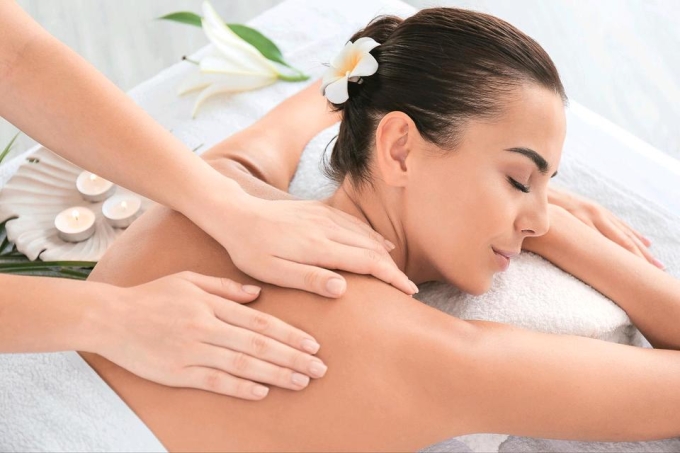 Wohltuende Wellnessmassagen in einer entspannenden Atmosphäre bei Kerzenlicht, beruhigender Musik und angenehmen Düften.