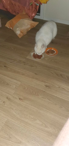 Hallo! Kennt jemand die weiße Katze/Kater? Kam heute abend zum ersten Mal bei uns rein und hat das fressen von unserem kater gefressen!Wäre im middeweg in brake.