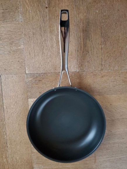 Wenig genutze besonders robuste Bratpfanne aus Edelstahl mit Antihaftwirkung von Schulte-Ufer. 24 cm Durchmesser. Ca. 700 Gramm schwer. Höhe ca. 5 cm. Fassungsvermögen ca. 2 Liter. Model Industar.