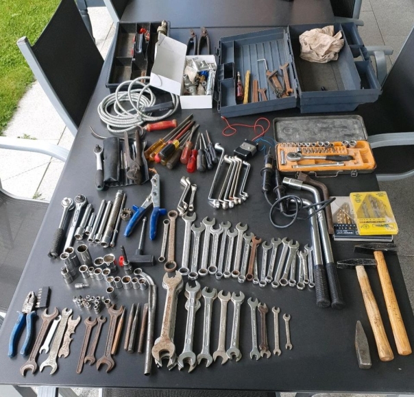 Ca. 170 Teile an Werkzeug und diverses andere mit 2 Kisten. Wie auf dem Bild.