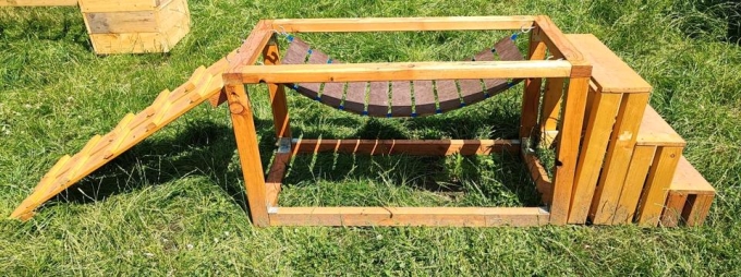 Verkaufe unsere Selbstgebaute Hundewackelbrücke. Diese ist sehr stabil und auch schwere Hunde können sie nutzen. Sie ist mit Schutzlack behandelt und kann auch draußen stehen bleiben. Wir haben sie trotzdem immer mit einer Pläne abgedeckt.