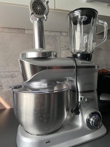 Ich Verkaufe hier eine Küchenmaschine die nur einmal benutzt wurde, da ich sie nicht nutze steht sie nur rum und ich finde es sehr schade sie rumstehen zu lassen vielleicht kann sie jemand gebrauchen, sie ist wie neu und funktioniert super, sie kann Teig kneten und es hat einen Mixer und einen Fleischwolf.
