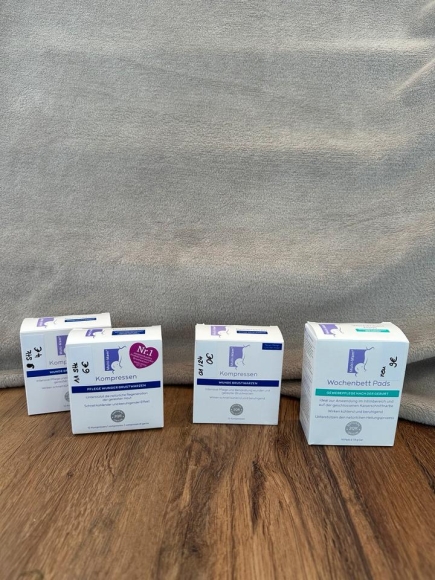 Ich verkaufe ein kleines, hilfreiches Set für die erste Zeit nach der Geburt – bestehend aus Multi-Mam Kompressen zur Beruhigung empfindlicher Brustwarzen und Wochenbett-Pads zur sanften Versorgung nach der Entbindung.