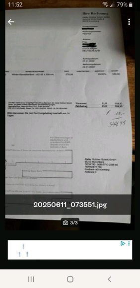 Kopie der Rechnung vorhanden