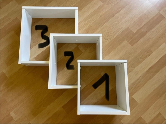 Wandregal, bestehend aus drei Fächern