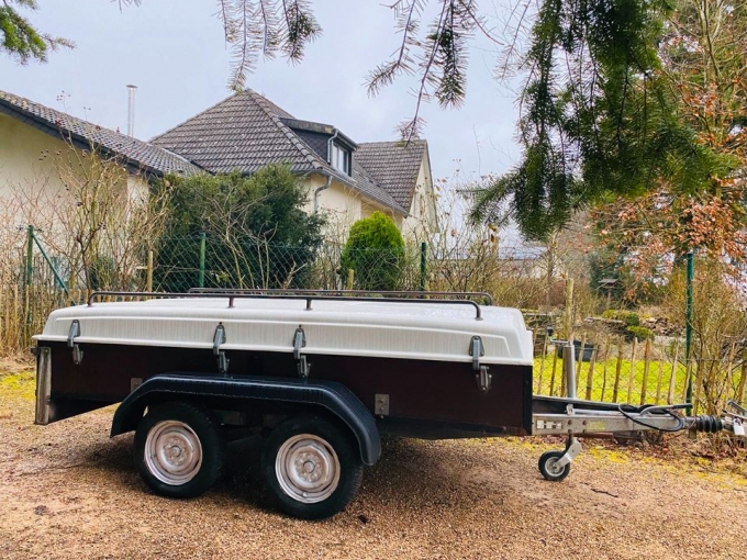 Westfalia-Doppelachser-Anhänger mit Einzelradaufhängung und Original Hardtop mit Reling