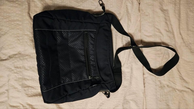 Wickeltasche mit 2 Haken für den Kinderwagen. 3 Taschen im Inneren für Flaschen, etc. und vordere Taschen zu. Es ist ein Schultertaschentyp.