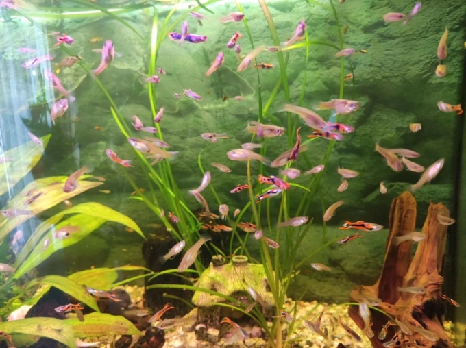 Wir verkaufen guppys und Garnelen.