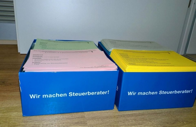 Karteikarten für die mündliche Steuerberaterprüfung zur Übung des Kurzvortrags. Die Karten wurden für die Prüfung 2021/2022 gekauft.