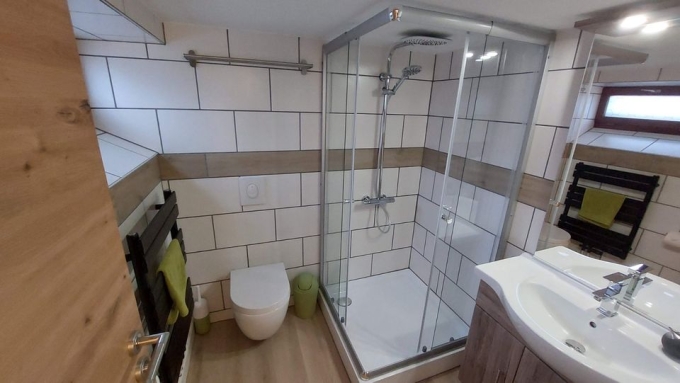 Erholung pur: Unsere Wellnessdusche und Hotel-Boxspringbetten sorgen für Ihren perfekten Feierabend.