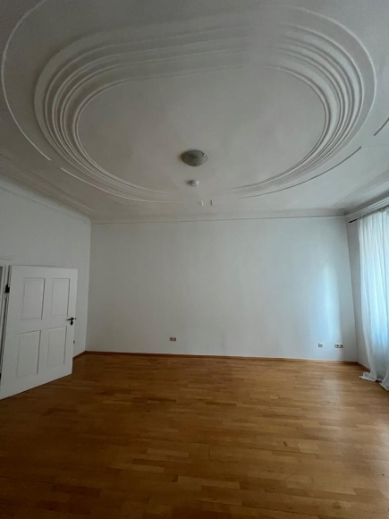 Die Wohnung verfügt über Parkett, Einbauküche, zwei Marmorbäder und zwei Schlafzimmer sowie ein Wohnzimmer. Des Weiteren ist noch der originale Barockstuck vorhanden.