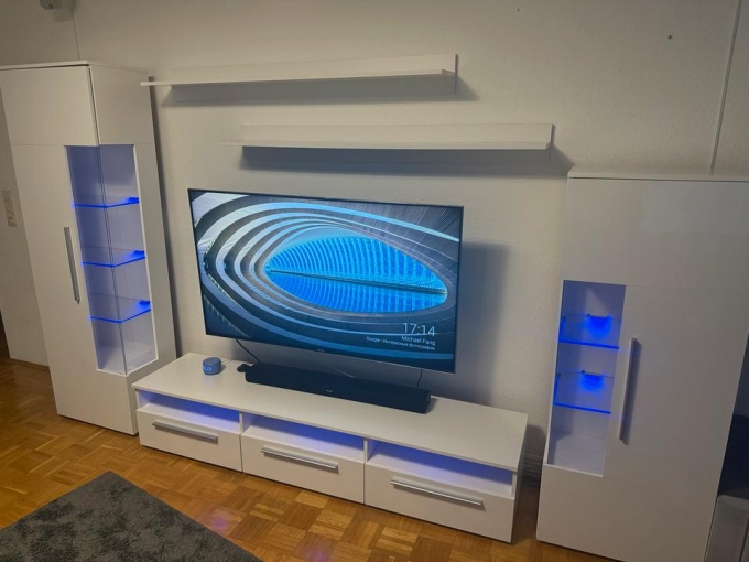 - Sehr gut erhaltene Wohnwand in Farbe weiß mit Beleuchtung.