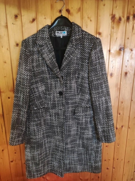 Hiermit verkaufe ich einen karierten Wollmantel.
