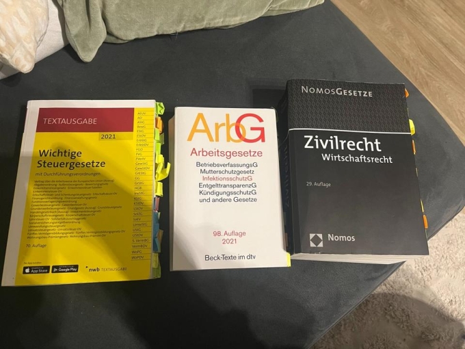 Ich habe die Gesetze für meine Wirtschaftsfachwirt Prüfung genutzt. Wichtige Markierungen durch Post its an der Seite und Textmarker-Markierungen (keine schriftlichen Einträge) sind vorhanden, die auf die Inhalte für die Wirtschaftsfachwirt-Prüfung abziehen. Die Auflagen sind von 2021 und sollten daher nicht in der Prüfung verwendet werden. Der eigentliche Vorteil der Bücher sind die Markierungen damit Man weiß, was man sich für die Prüfung der Wirtschaftsfachwirte genau anschauen bzw markieren sollte.