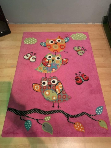Tausche Kinder-Teppich 1,2m/1,7m, pink mit Eulenmotiv gegen 3 Tafeln Milkaschokolade (Ganze Haselnuss). Nur Abholung.