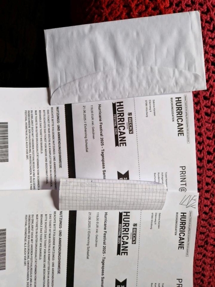 Zum Verkauf stehen 2 x Tagestickets inkl Parken für das Hurricane Festival am 21.06.25
