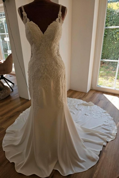 Das Kleid ist ungetragen, es wurde nur zur Abholung und Änderung der Länge bei der Schneiderin getragen.