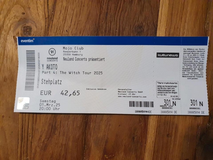 Verkaufe 1 Karte Y'akoto 01.03.25 im Mojo in Hamburg.