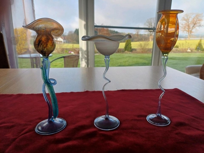 Mängel. Standen nur in einer Glasvitrine. Die Gläser sind 18, 20, u.22 cm hoch.