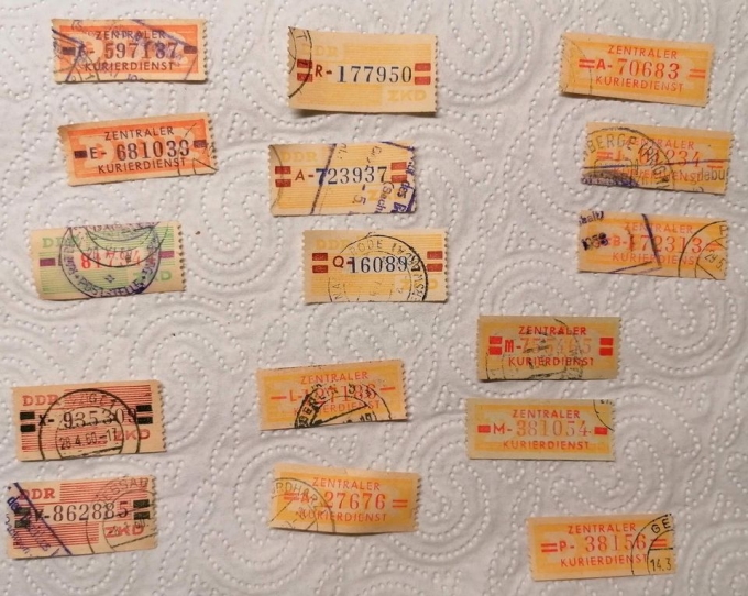 Biete die auf den Fotos zu sehenden Briefmarken des zentralen Kurierdienst (ZKD) der ehemaligen DDR zum Verkauf.
