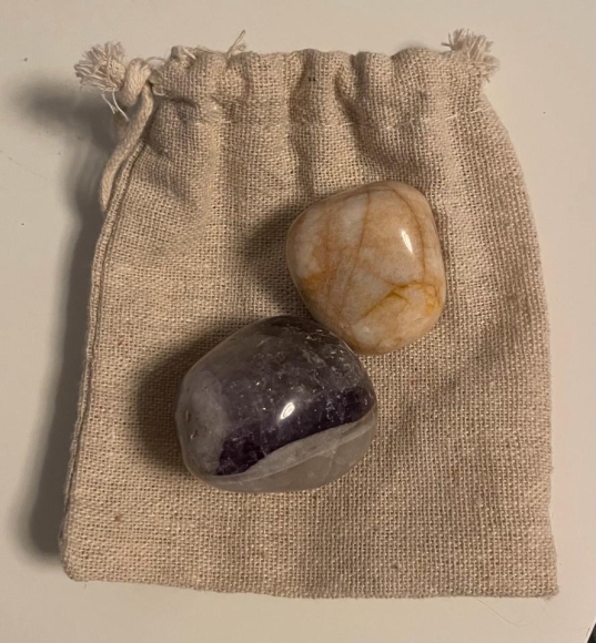 Ich habe zwei Heilsteine geschenkt bekommen. Der eine wird ein Amethyst sein, bei dem anderen bin ich mir nicht sicher, es könnte ein Calcit sein.