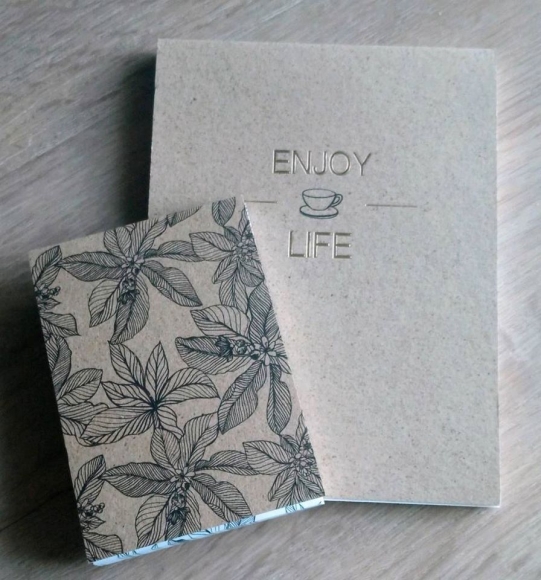 Zwei hübsche neue Tchibo Notizbücher aus recyceltem Material.