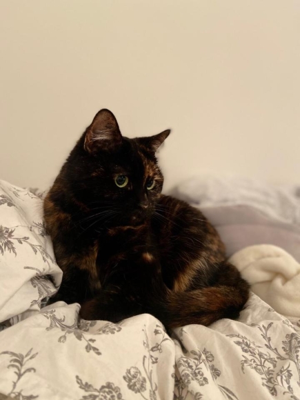 Braun/schwarz: Katze, sehr gesprächig, lieb, respektvoll, auch sehr menschenbezogen und neugierig.