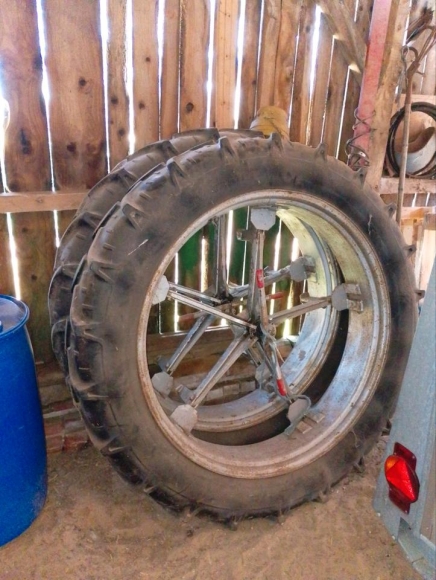 Habe noch ein paar Zwillingsräder 12,4 R 46 mit 5 Armen. Sie haben an einer 38 Zoll Felge gepasst.